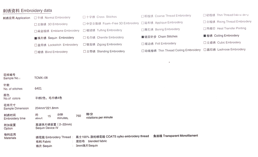 | 【產(chǎn)品名稱】 | 四色衣服圖案電腦珠片繡鏈目繡卷繡刺繡加工 |